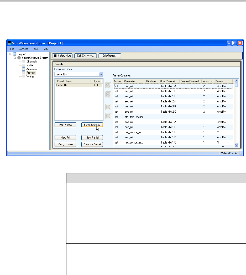 sible to determine the settings that are in each preset. The column headings